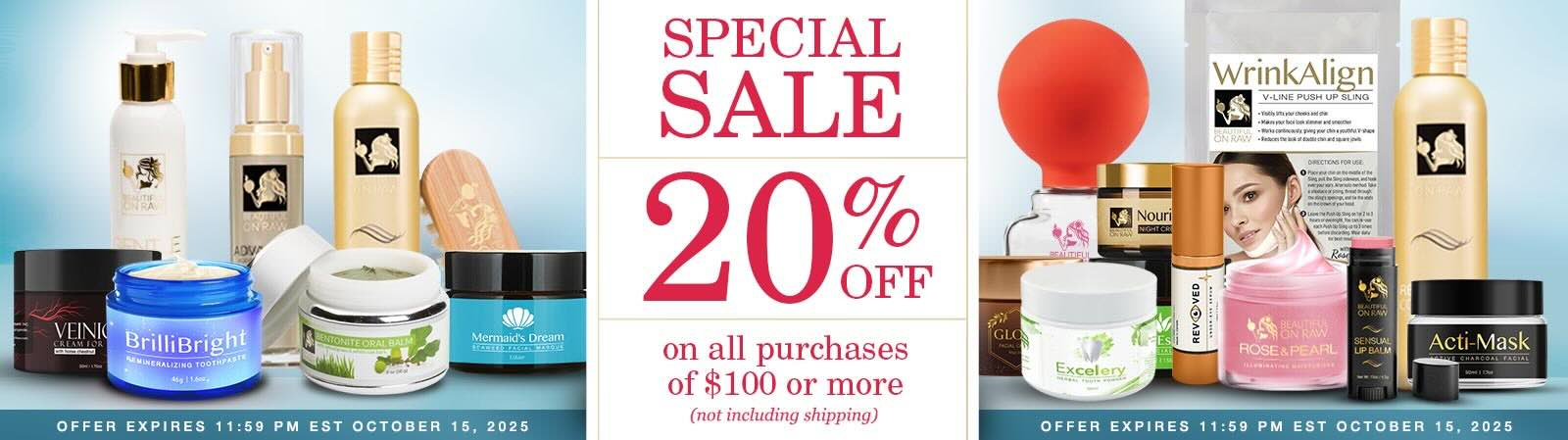 Our October 3-day special: Spend $100 or more at our online Beauty Store by Wednesday night, 11:59 p.m. EST, October 15, 2025 and get 20% Off.