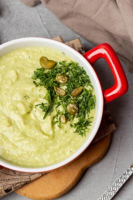 Blend all ingredients except dill in a blender or Vita-Mix. Garnish with dill before serving.