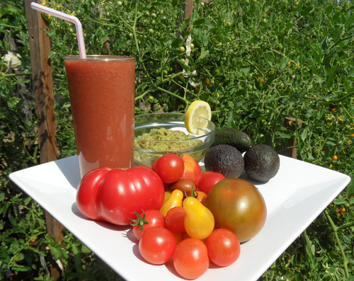 These days my taste buds feel a strong desire for pure tomato juice from heirloom tomatoes. The question arose: What to do with the pulp? I decided to mix it with two small Hass avocados. I squeezed in a little lemon juice and a pinch of salt. The result: an incredible guacamole. I had my two meals: I drank my juice and I ate a bowl of guacamole. I haven't eaten avocados regularly since 2007. Just didn't feel like it. But now I’m feeling the urge to have these two meals every day. I suspect I’ll keep this up as long as I can get fresh homegrown heirloom tomatoes.